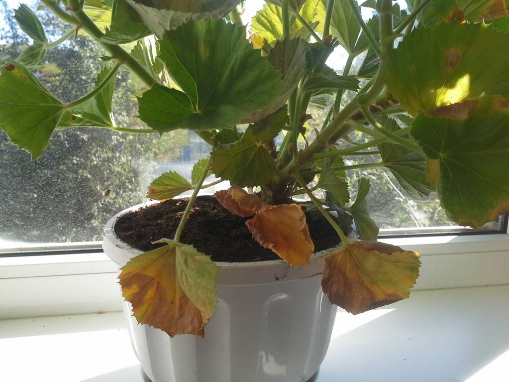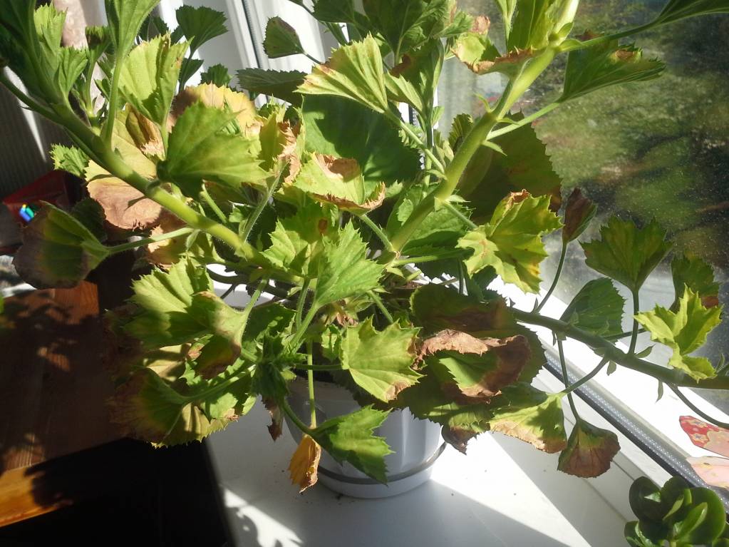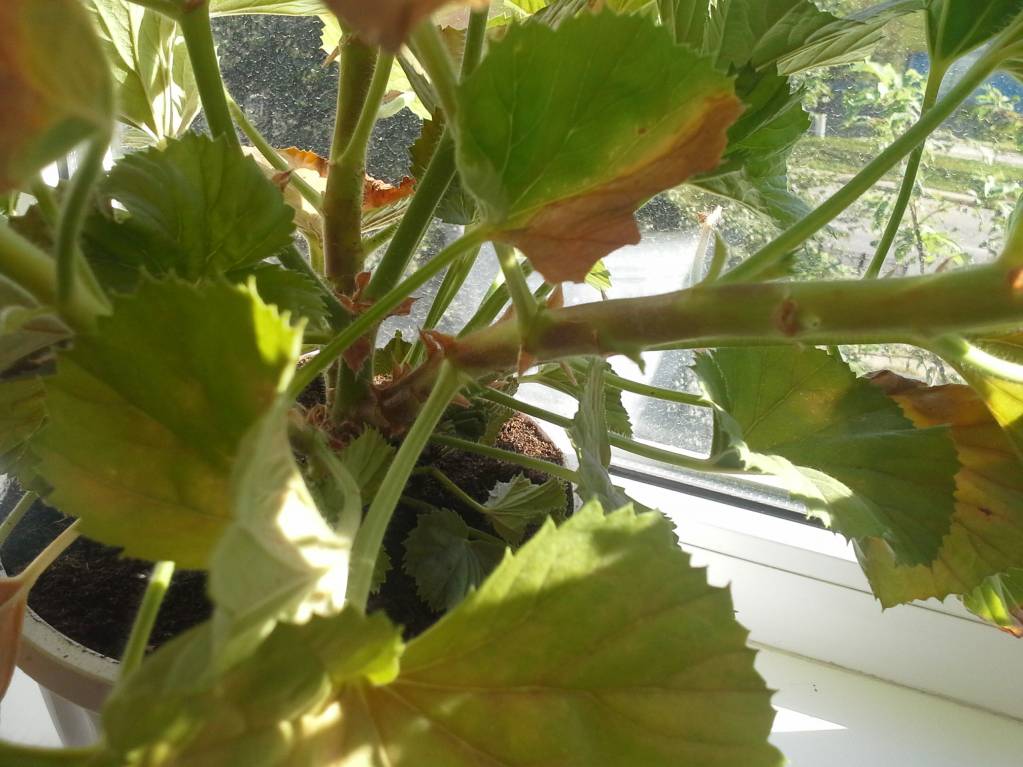Девочки, нужен совет. Это полудохлая пеларгония. Куплена весной. Все время цвела, буйно разрослась. Как началась жара, листья стали желтеть и засыхать по краю. Тургор хороший, цветение не прекращалось. Поливала редко, думала, что недолив. Стала поливать чаще. Горшок и грунт были покупными, торф, как вата. Пересадила в больший горшок и универсальный грунт. Пока не сдох, хуже не стал, но и лучше не стал. Что это может быть и что делать, подскажите дураку.
