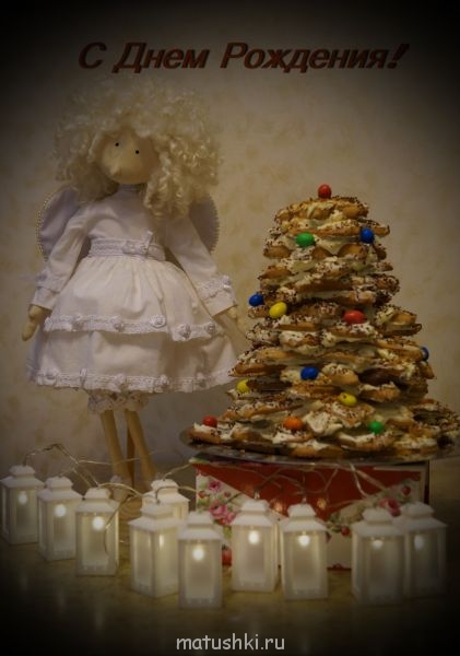 Я этого Ангелочка уже показывала. Он предназначается моей старшей и единственной сестре. День рождения у нее завтра, и хотя она далеко от меня, мы все равно празднуем день рождения и поздравляемся по скайпу. Я испекла торт и сделала открытку, а Ангела передам с оказией, жалко, что поздно. Хотела летом привезти и оставить знакомым, чтобы они принесли его утром в день рождения, но вспомнила только в поезде. Выставляю свою открытку и торт на ваше обозрение. Надеюсь, вы узнали, что торт - елочка?