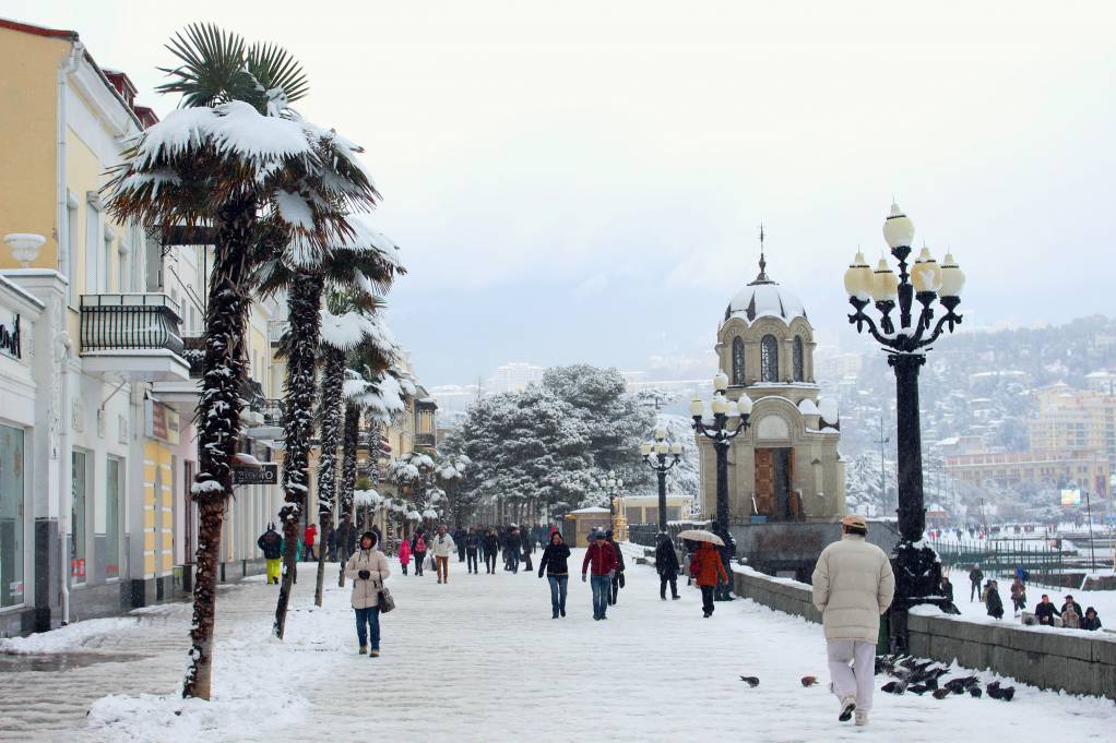 набережная-красавица наша!только мы не можем выехать в Ялту т.к. 2-й день ни один пригородный автобус не ездит,на работу 8км напарница пешком по сугробам добиралась,ясегодня на такси,и скорее всего останусь у девочки с работы ночевать.Начальство раньше отпускать не хочет,вчера отпустили,но со "скрипом" в 18-00.