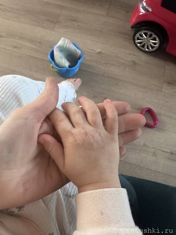 Год назад Настя обожгла утюгом руку по моей вине , была очень большая рана , сейчас у нас образовался вот такой рубец .