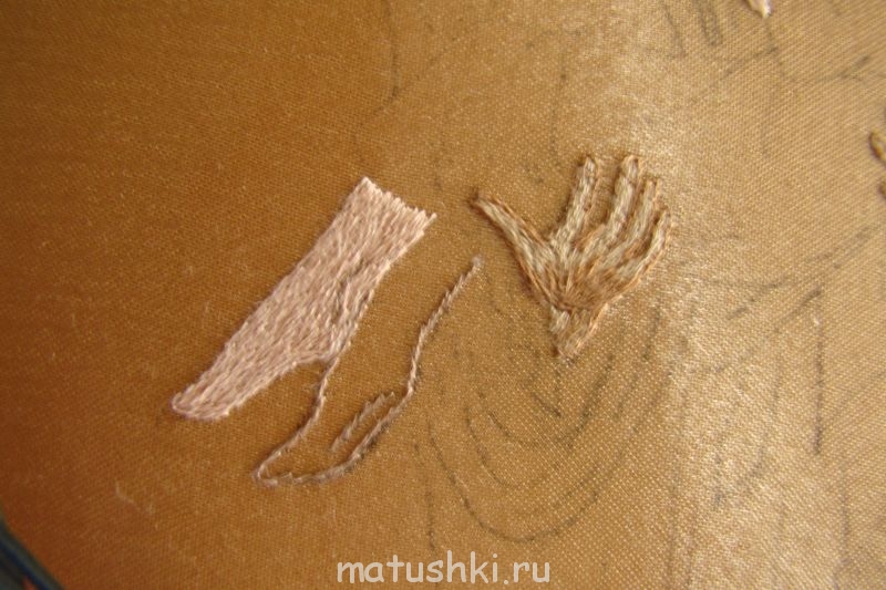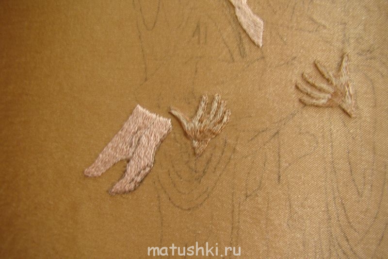 . Ладно,Римма,если ты тут,пока так попробуем. Пальчики ребенку можно не обводить. Чтобы не сливались,разделим потом цветом одежды Ангела. Ножку,которая в тени,можно обвести нитью 3221.
