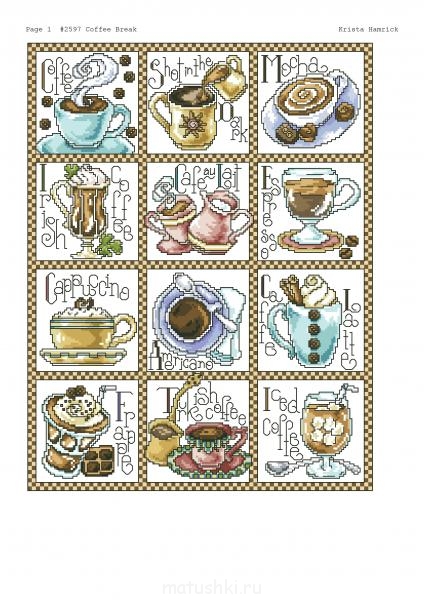 И что вы думаете? В пятницу отправить канву не удалось, пришлось ждать до понедельника. Думаете, я спокойно сидела на пятой точке, определившись со схемой? Нее, я шерстила другие схемы. Хотелось мне все-таки чего-нибудь "своего"... И вот попалась мне на глаза такая легкомысленная картинка с напитками.