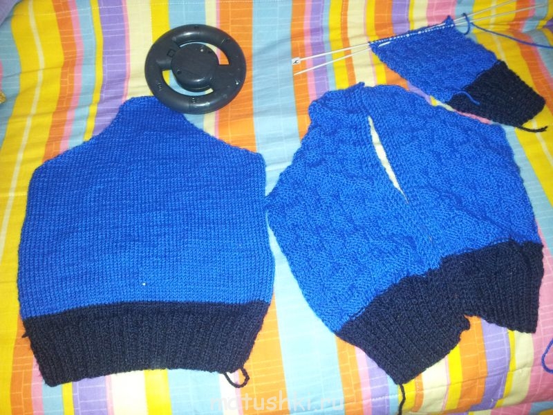 В общем, я довязала спинку (булавкой отметила ряд, с которого начала в прошлый четверг) и начала левую полочку. Если бы не форум, то все давно бы снова забросила!