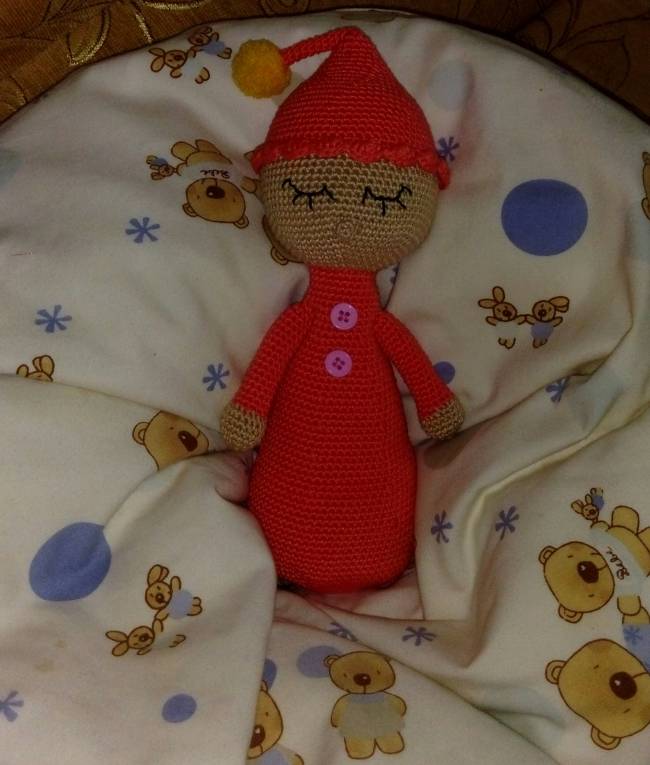 Вот такая сплюша получилась. В ногах нут для развития моторики и для равновесия куклы