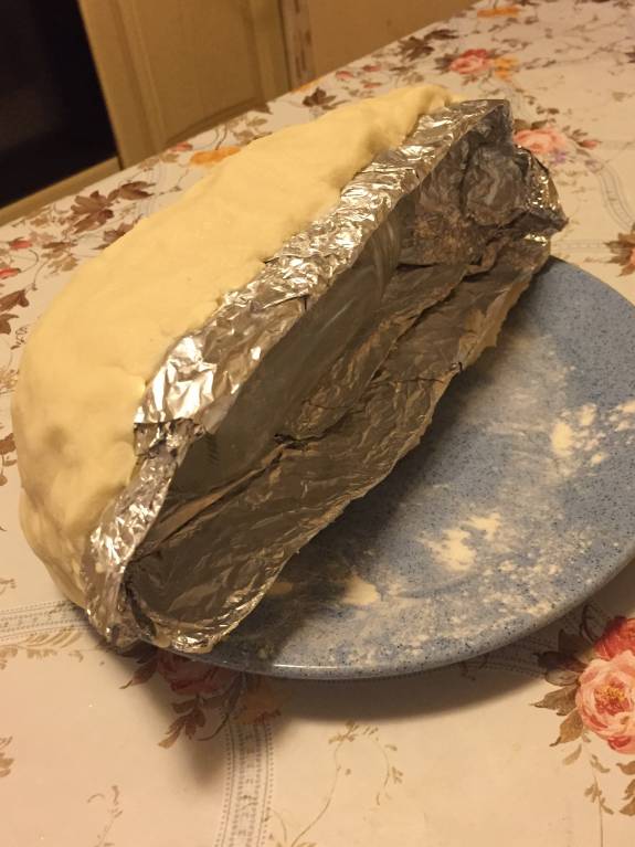 Муж помог найти решение - как придать нужную форму будущему вертепу из соленого теста:).