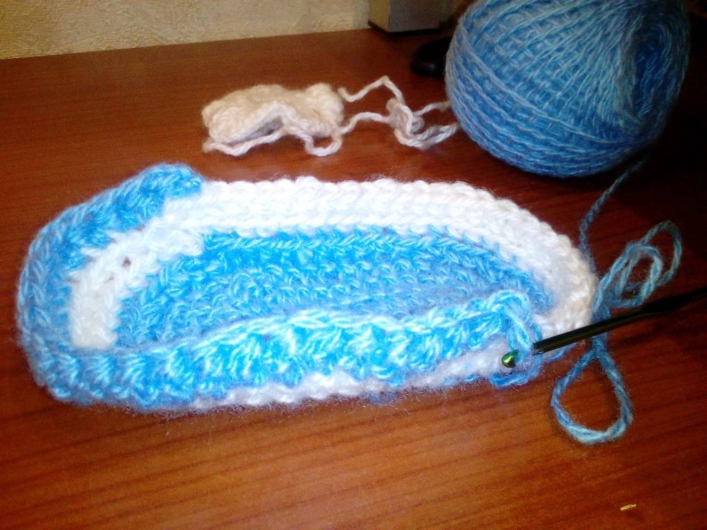 . Вчера сходила в магазин и купила крючок с пояжей. Начала учиться вязать по интернету. Сначала пинетки племяшку.