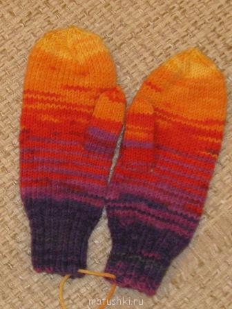я бы еще мотки перемотала перед вязкой, чтобы кончиках варежек был темный цвет, а желтый ушел бы на резинку. в сочетании с темной верхней зимней одеждой смотрелось бы интересней (на мой вкус).