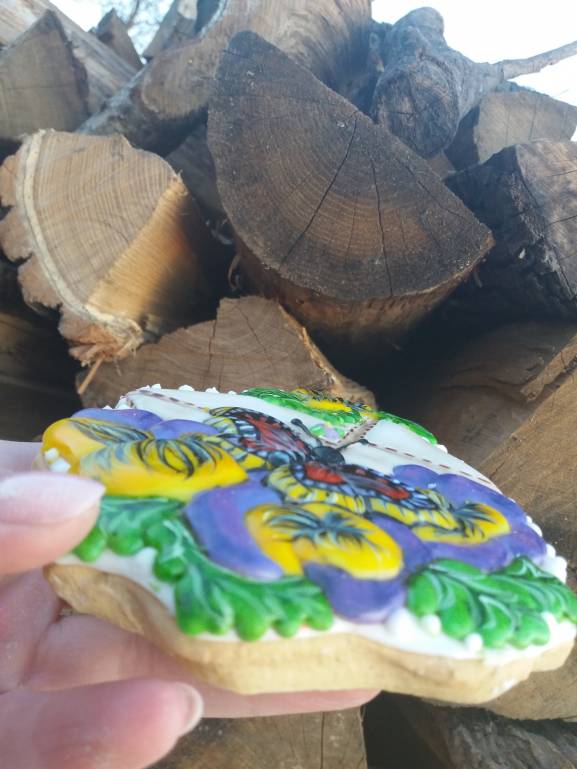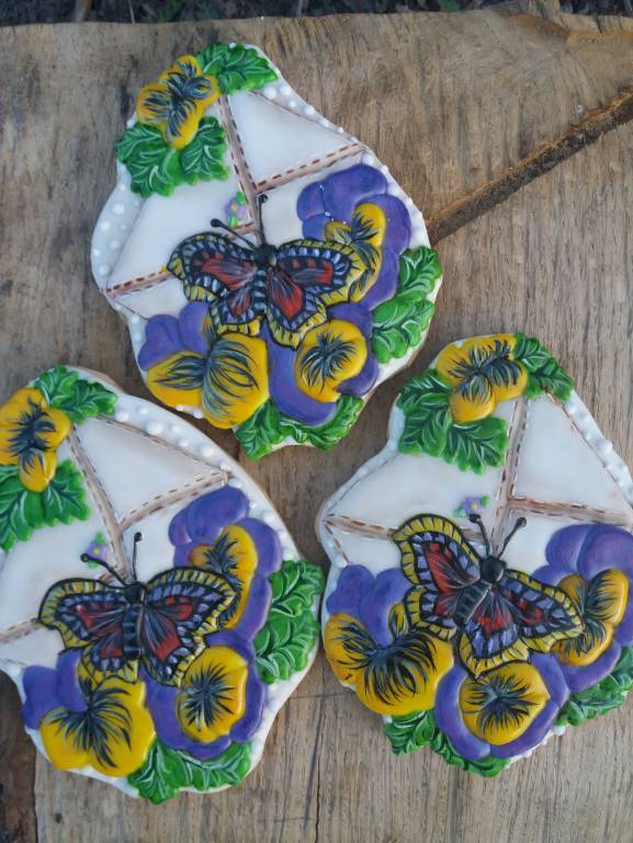 Закончила пряник "Цветочное письмо" (пайпинг+акварельная техника) фиалки так себе получились, нужно больше тренироваться