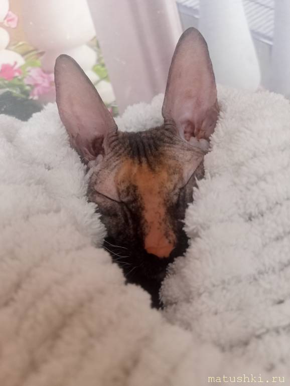 Дюймовочка, ей уже год, а она до сих пор ведёт себя, как котенок. Это совсем другая кошка, таких у нас не было. Спит со мной, кутается в пледики, мурчит и даже мяукает так, что это звучит:"Ма-ма!" Привязана ко мне, если я ухожу надолго, то она волнуется, мяукает, ищет по дому.