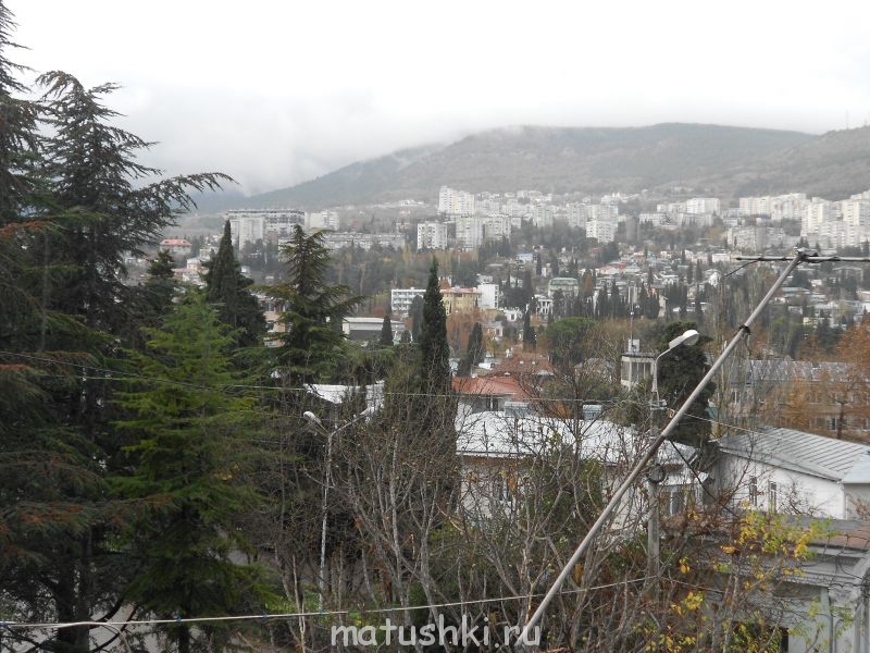 У нас дождь идёт без перерыва, а в горах (вот как раз на фото их скрывает туман) - снег. Я видела его, когда дымка становилась реже.