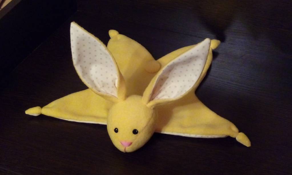 Вот такая игрушка получилась, для новорожденных, мягкая и безопасная, в плане ничего не отвалится.