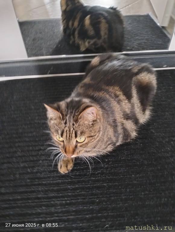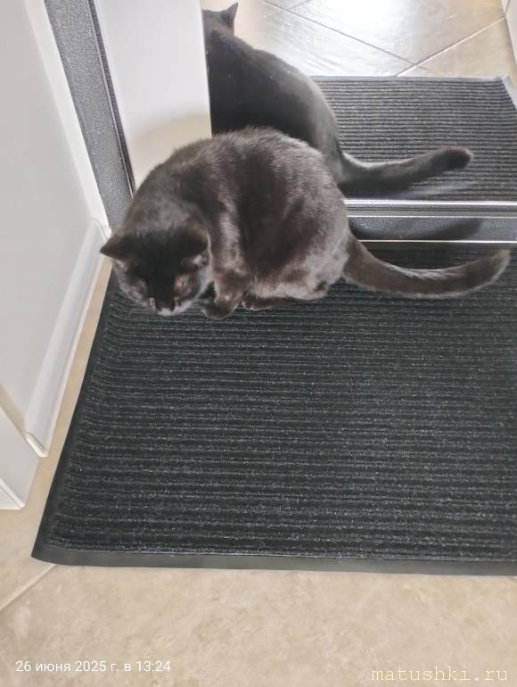 Примеряются к новому коврику, он же когтеточка по совместительству.