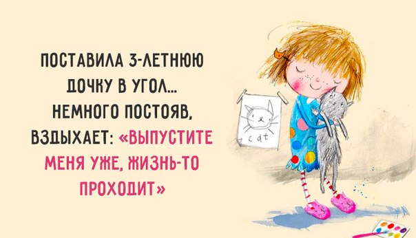 — Мама, почему ты сначала учила меня ходить и говорить, а теперь хочешь, чтобы я сидела и молчала?!