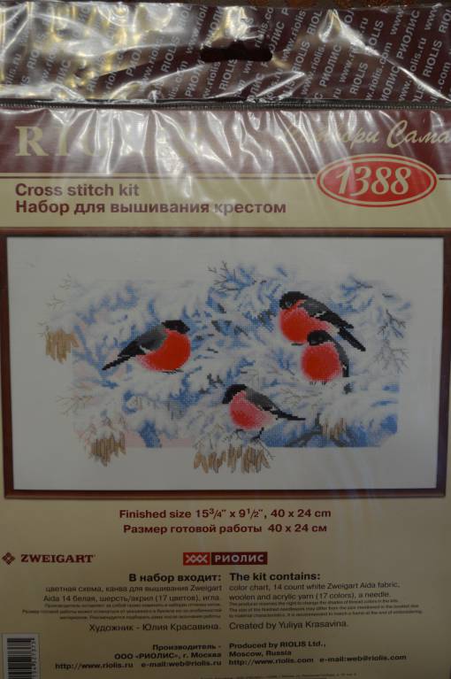 2) Набор для вышивания крестиком "Снегири" (очень мне понравился), так хочется его начать вышивать, хоть у меня сейчас уже начатых 2 набора