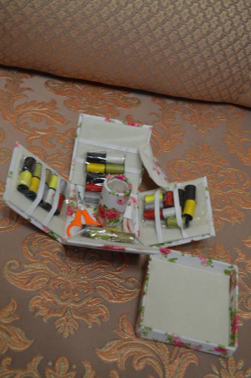 3) Чудо-шкатулочка для рукоделья ввиде куба с нитками, ножницами