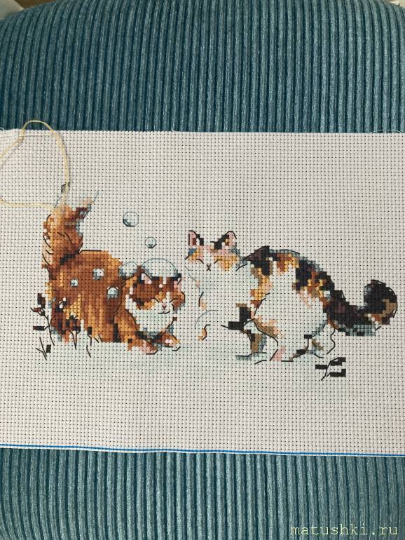 Вышивка нитками крестиком это новое для меня занятие, начала осваивать его, увидев в магазине эту прелестную картинку с кошечками.
