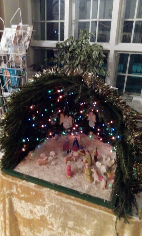 В 12 пришла в храм подарки собирать, потом со свекровью украшали икону ветками стланника и белыми цветами, и попытались сделать арочку над вратами, ну для первого раза даже симпатично получилось, потом на улице поставили вертеп, как подарок для всех от воскрески ( пещера из снега а фигурки нарисованы и свечи горят).Получилось празднично.Первый раз в жизни пошла на рождественскую службу,причастилась. Остались на трапезу и вот я дома, разложила подарочки. Ложусь спать с ощущением тихой и нежной радости!