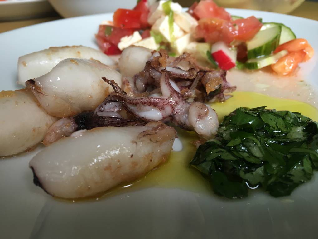 Подарила сегодня кальмаров.. Мужу понравилось, меня не особо впечатлило, на вкус они никакие. На гарнир был только греческий салат. Как первое блюдо/закуска - хорошо, для основного - жидковато.