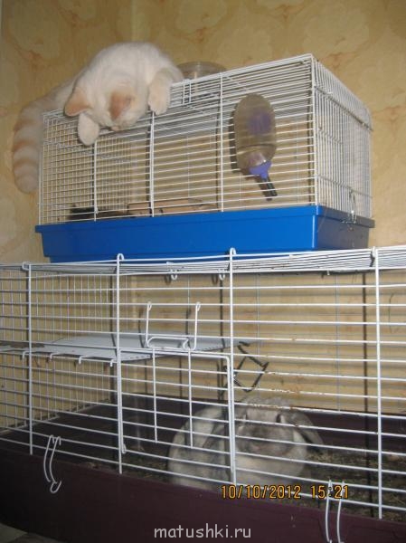Иоаннушка, ты смотри за такой любофью Котофея. У меня с такой любофью кота к представителям грызунов, мы лишились своего питомца, не успели вырвать из зубов Умки нашего Пушистика.иоаннушка:излюбленное место отдыха - на клетке с морской свинкой