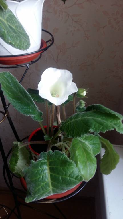 Я не знаю. Куплена в магазине в феврале. Немного переболела и стала цвести. Супруг ей в основном занимается. И глоксиниями тоже. Рыхлит, подкармливает, выносит на день на балкон застекленный гулять