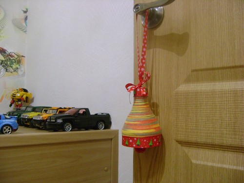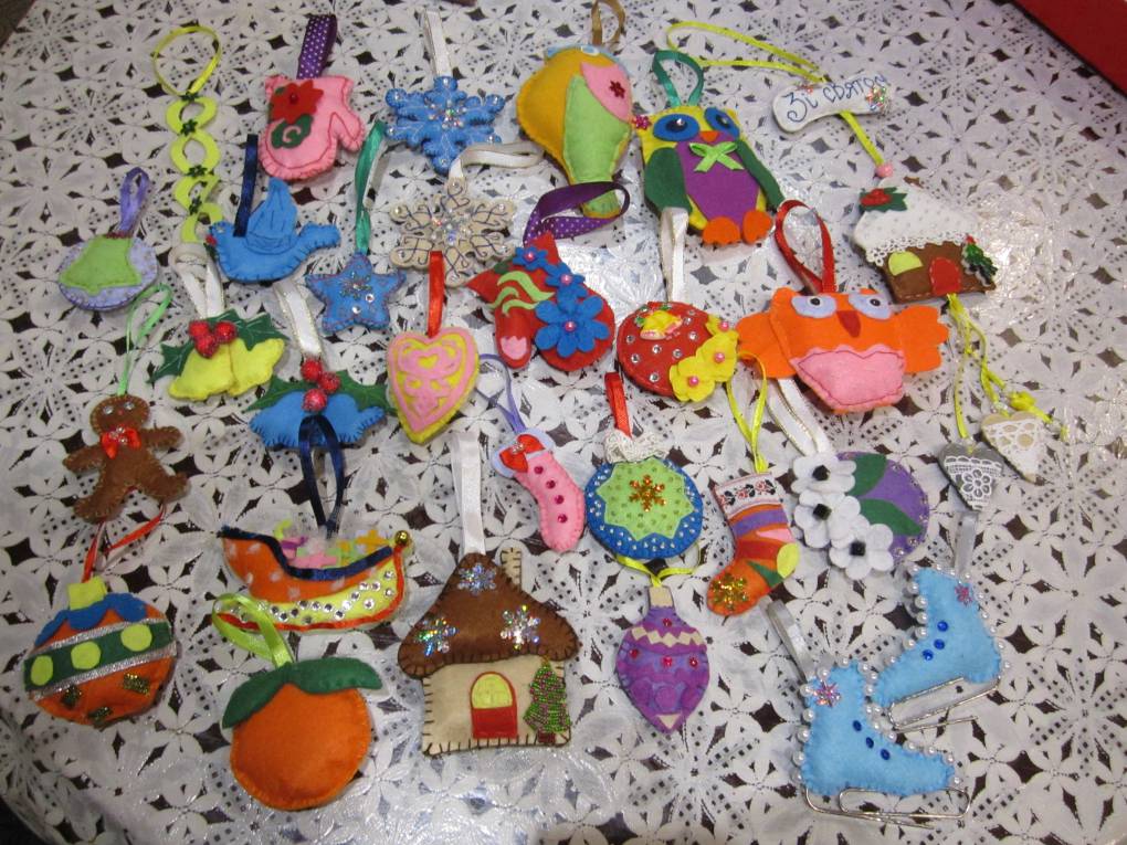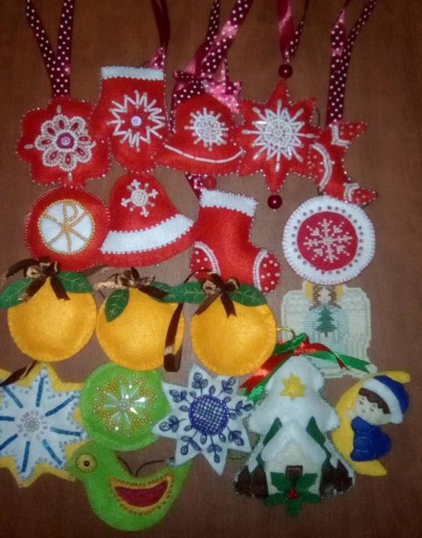 А у нас вот что получилось. Для украшения елки маловато будет, ну ничего, повесим дождика побольше, может сама засяду и нашью.