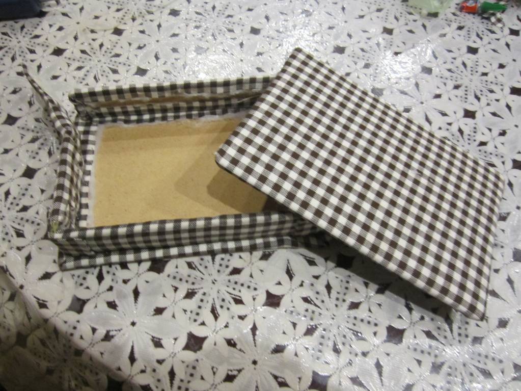 Присматривала я для своих девочек копилки. Ни одна из керамических мне не понравилась: тяжелая, дорогая, да и чтобы достать денежку обратно, нужно разбивать и вдруг в одном магазине увидела текстильную копилку (жутко дорогую), покрутила, повертела и решила рискнуть. Подключила мужа: дала ему размеры и он вырезал мне детали из ДВП. Додумывала все сама, потому что в интернете ничего похожего не нашла и вот что у меня получилось