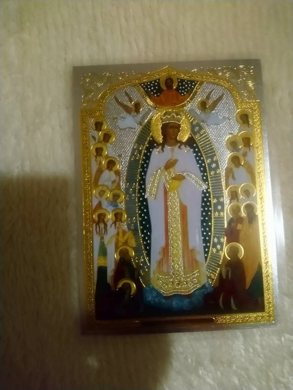 Очень мелкий шрифт на иконе и никак не рассмотреть названия. Может быть кто знает? Как понимаю изображена Богородица.
