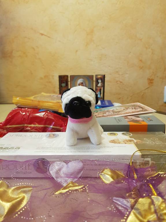 Прекраснейший мопс, очень милый, очень я ему рада, у нас дома как раз мопс, и мы собираем мопсиную тематику.