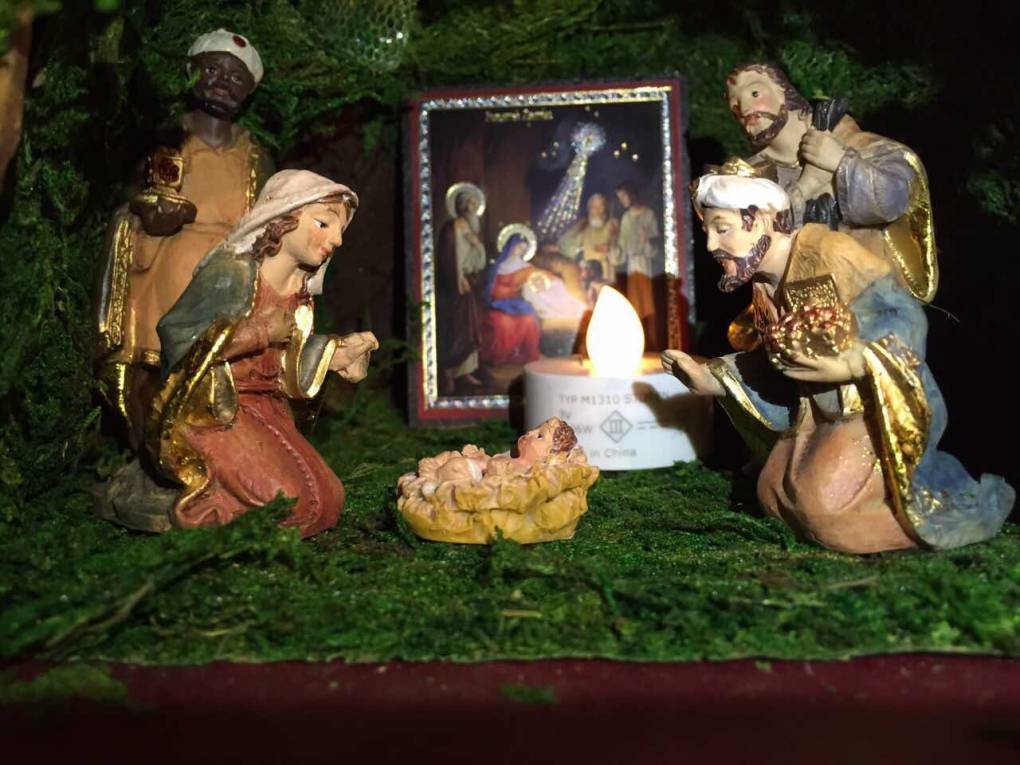 Вот, я в качестве Иосифа поставила фигурку с посохом справа в глубине, но мне кажется, это скорее пастух