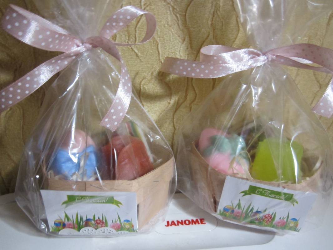 Да, использовала каркас, креп-бумагу, искусственные цветы. Мыло насаживала на шпажки.