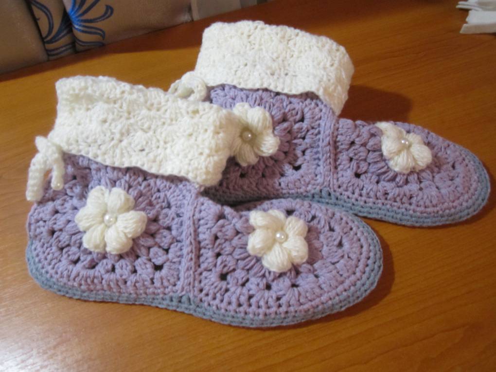 В первых тапках подошва-это стелька войлочная прорезиненная, в лаптях по кругу вязание идет.