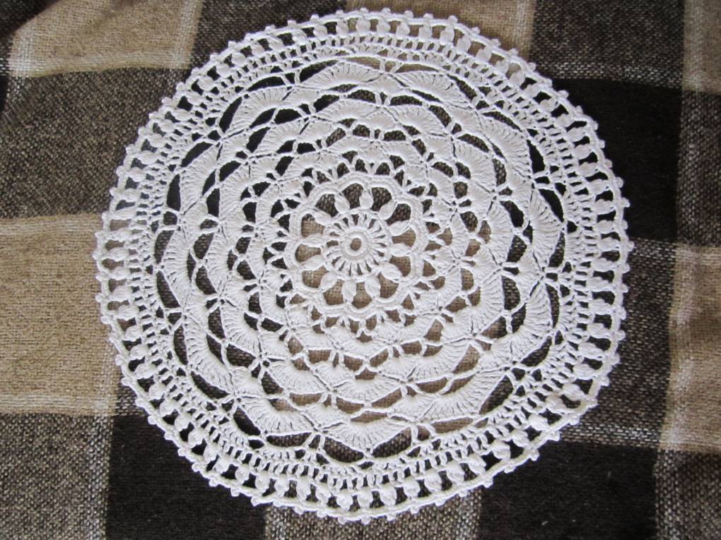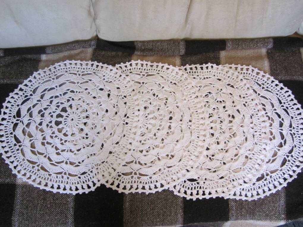 4 накидки на стул. Очень понравилось вязать вот такими нитками (100% хлопок) В мотке 50 гр - 180 м. Один моток - одна накидка. Рисунок очень простой. Серединку вязала по видео. остальное сама сочиняла. Диаметр - 40 см