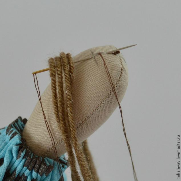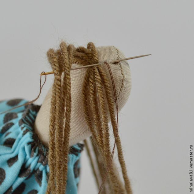мамася ася, волосы отдельными прядями пришивают так- если пряжа