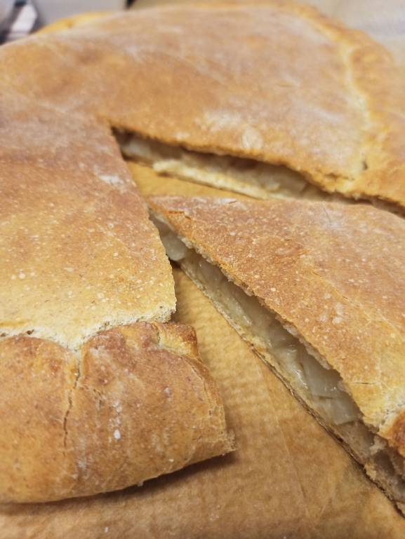 А на ужин запеченная картошка с кальмарными котлетами и пирог с ананасами(консервироваными)