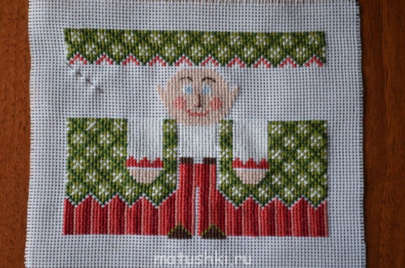Закончила своего Эльфа. Только пока не собрала -- бубенчики нужны, а у нас тут найти не могу, буду через инет заказывать. Бэк+крестики+ковровая вязка = 1178 крестиков.