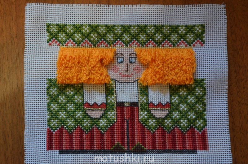 По бокам оказались просто огромные припуски на сшивание, поэтому ковровой вязкой не стала вышивать на припусках.
