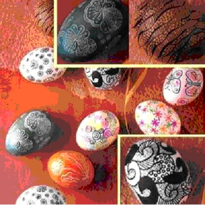 Так можно расписать просто фломастером, по крашеному или белому яйцу. А если у вас найдется водостойкий фломастер, так и совсем хорошо.