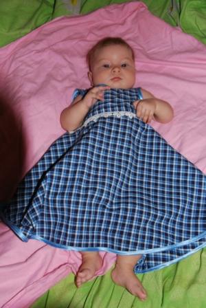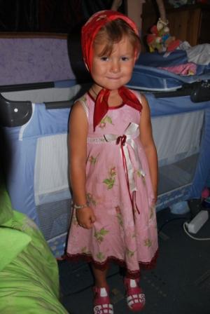 А вот девочкам шью постоянно, но по одной выкройке. В начале лета и зимы ищу понравившуюся ткань и в путь. Вот что у меня получается. Этот сарафанчик по простейшей выкройке , и времени занимает ок полутора часов.