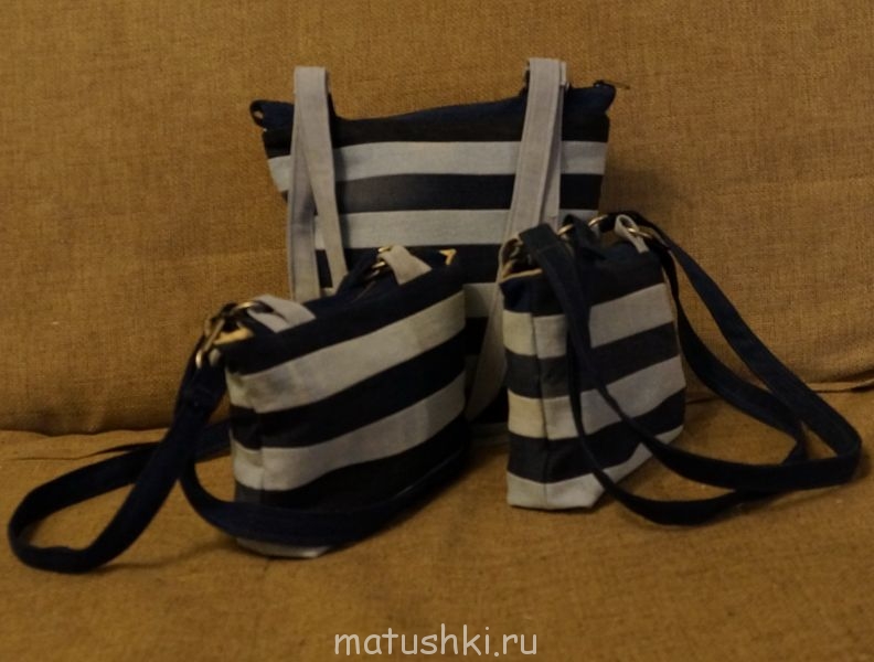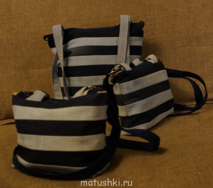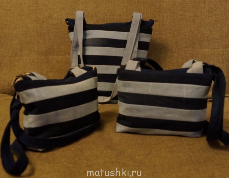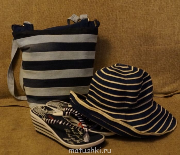 Опять переделки из старых джинсов. Сшила себе полосатую пляжную сумку к шляпке и сланцам (30 июля уезжаю с детьми в отпуск в Керчь к родителям). Девочки захотели тоже такие сумочки, я им не отказала. Все счастливы.