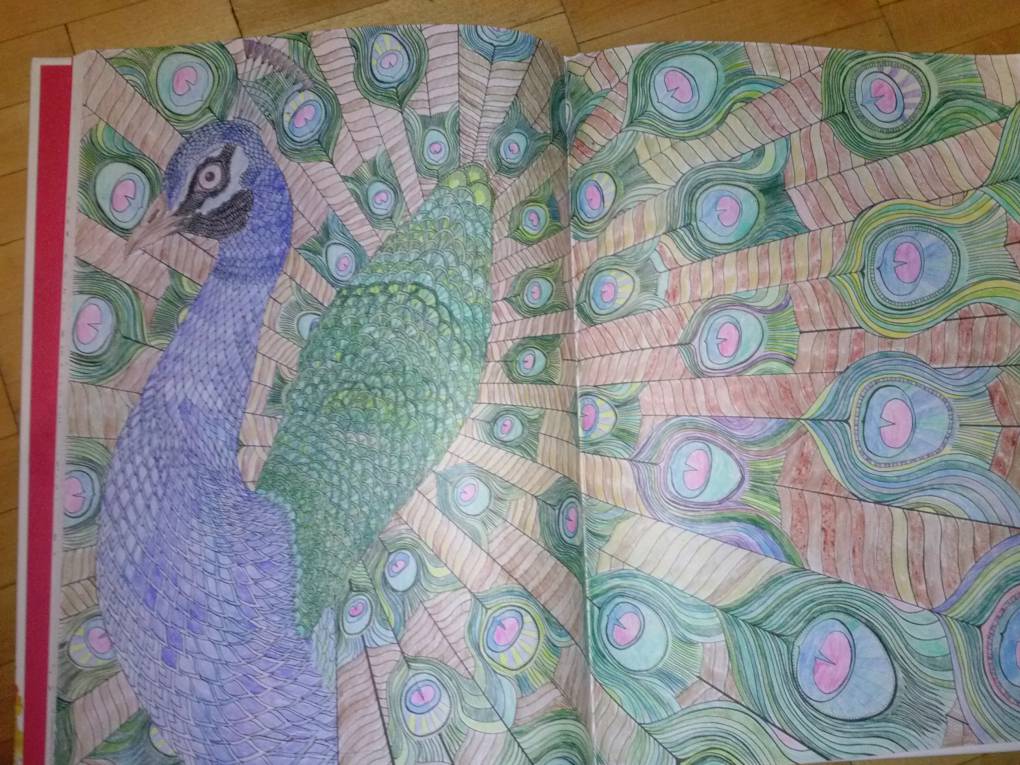 Мне подарили на ДР раскраску я две недели раскрашивала голубого павлина