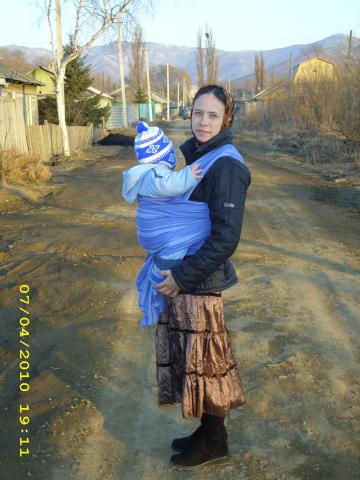 Мне в трикотажном очень понравилось, уютнее как-то, чем в плотном нетянущемся. Проблем с провисанием практически нет, если заканчивать завязывание слинга-шарфа, когда уже расположила в слинге ребенка -- затянуть сильнее, плотнее. зафиксировать узел.
