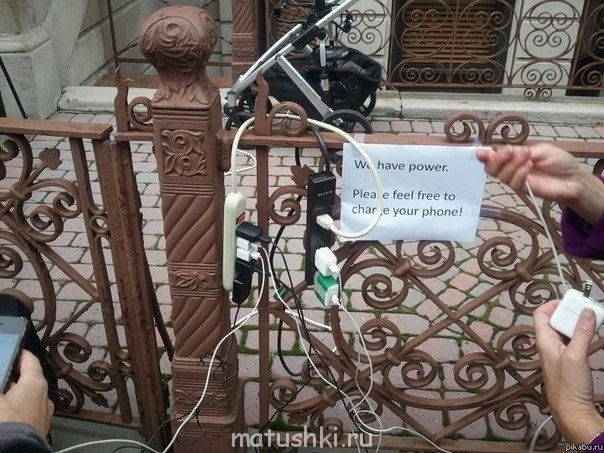 "У нас есть электричество. Пожалуйста, не стесняйтесь зарядить свой телефон"