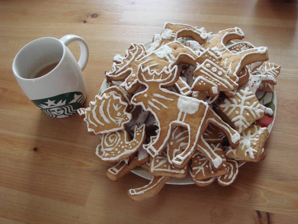 Я все-таки в этом году испекла пряники и привлекла всю семью к их росписи - неплохо получилось, только жалко, что ни елочек, ни домиков, ни снежинок у нас не было.Теперь весь год буду формочки подыскивать