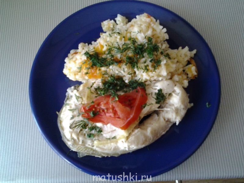 Пришли из храма, нас встречает аромат еды. Мультиварка потрудилась нам овощной плов сварить и рыбу на пару приготовить!