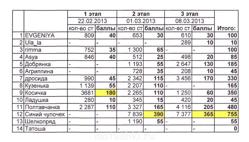 Не смогла отчитаться в пятницу, так как была на даче. хотела выйти на связь, но интернет там никакой, только дал посмотреть и скачать прошлую фотографию, все спешила домой, а сейчас пришла, уже таблица... ладно, пусть будет ноль, лучше уж в пятницу по полной тогда отчитаюсь, все посчитаю спокойно. выходные, что с ними поделаешь!