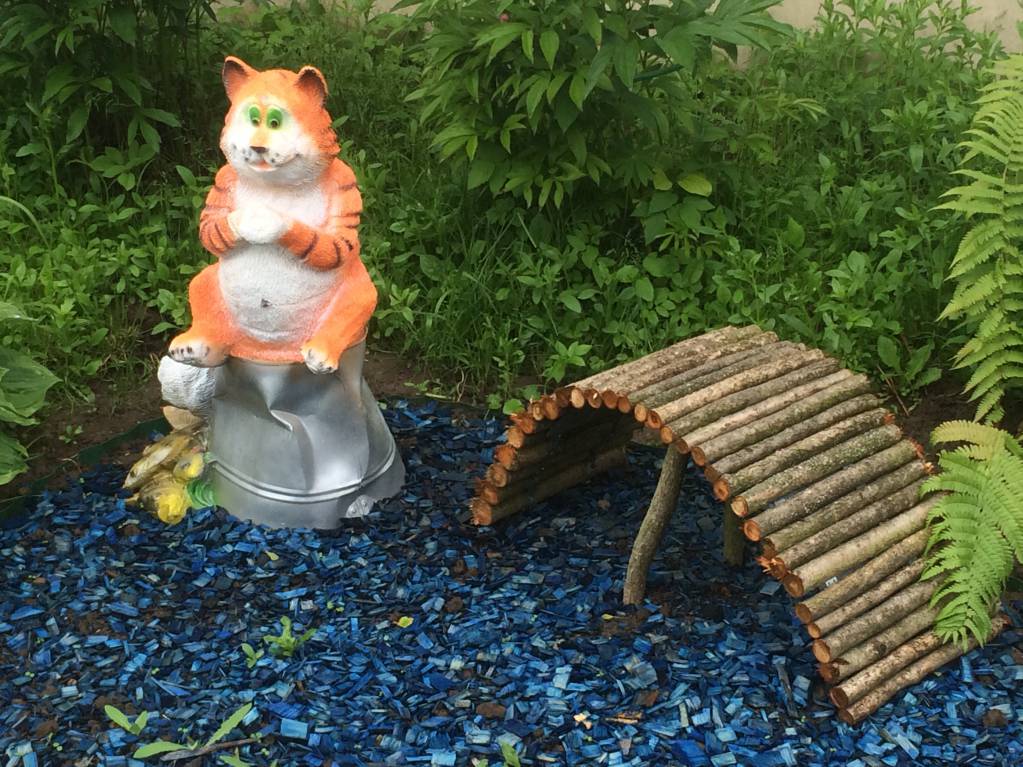 Мы в этом году решили приукрасить дачный участок. У котика еще со временем появится удочка в лапках.
