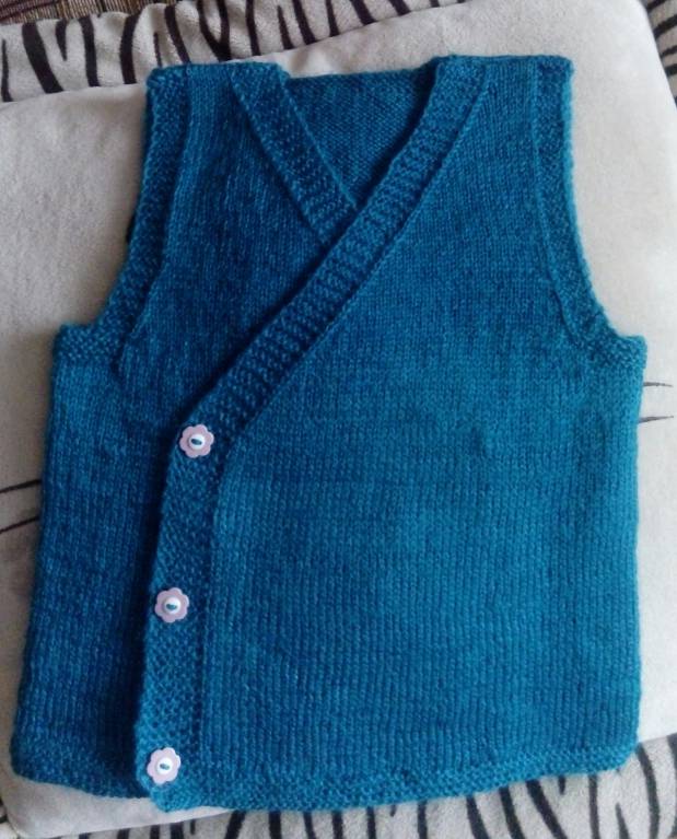 Вот такая жилетка получилась, шов только на плечах, с запахом.