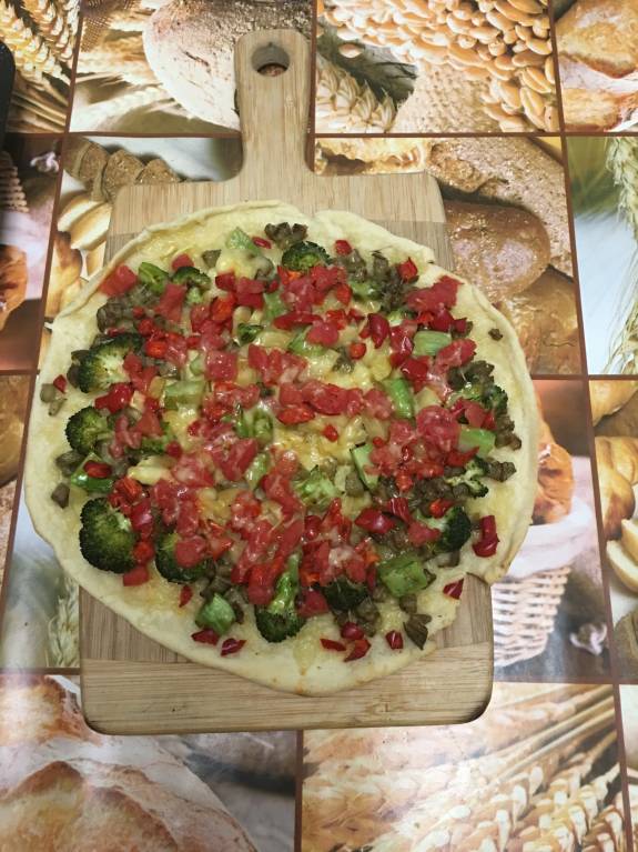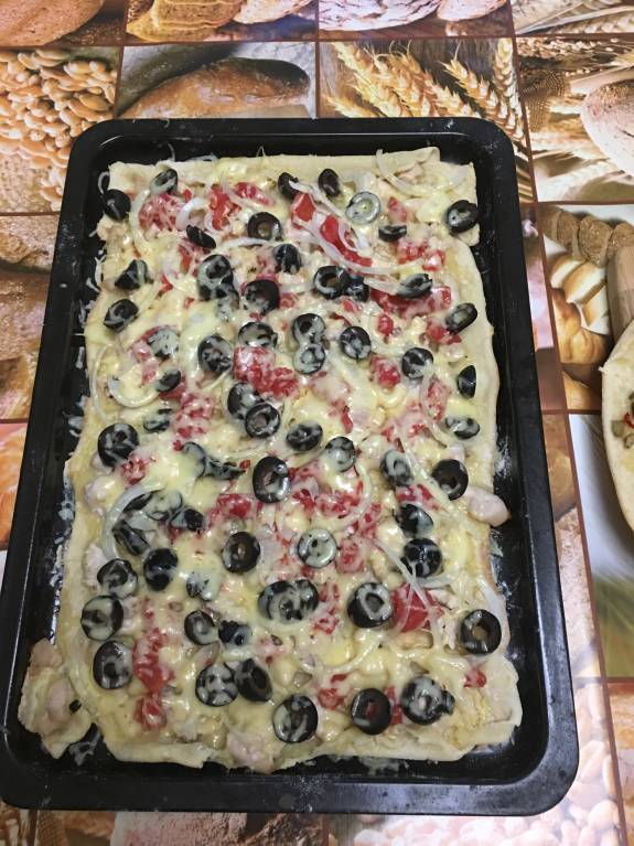 Сегодня сделала три пиццы - с курицей, с овощами и с брынзой (её нет на фото)