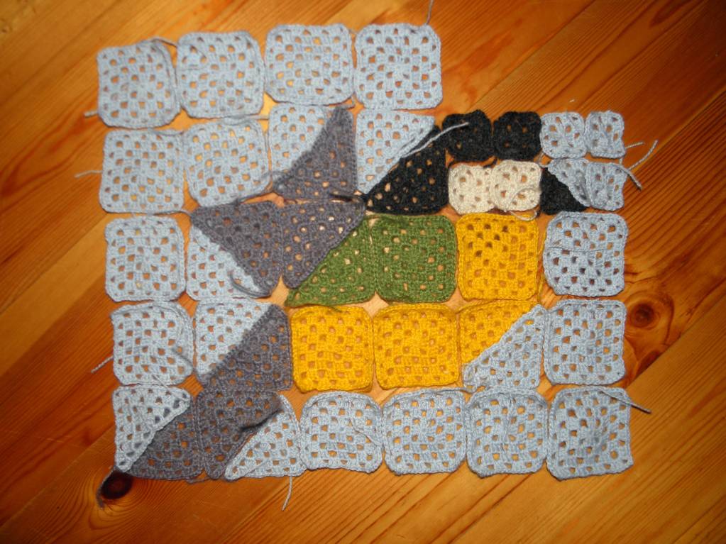 Я неожиданно поняла, что бабушкины квадраты и треугольники - это неисчерпаемый источник! Будет плед с синичками!