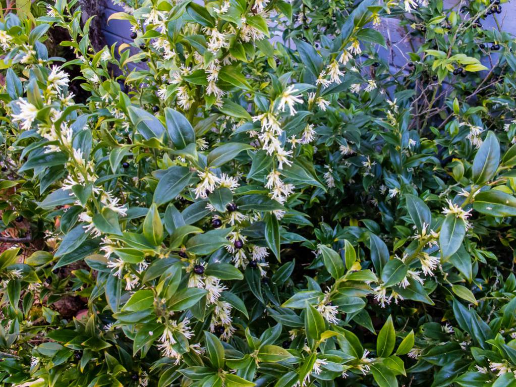 А вот это - королева февральских запахов. И имя такое причудное: саркококка низкая.